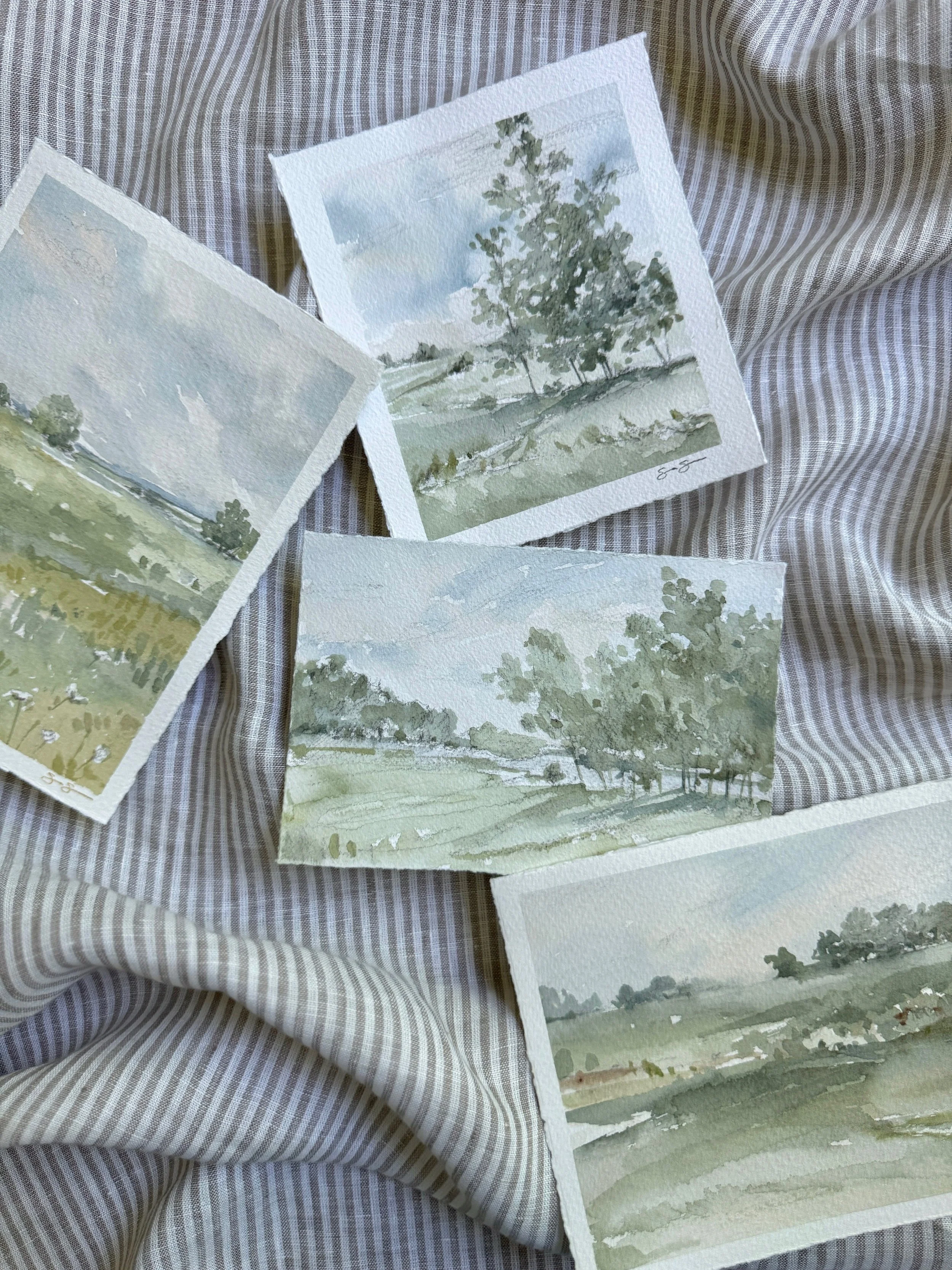 “One of my favorite things to paint are soft, moody landscapes - especially on linen. Painting on linen brings textural notes to the piece which adds valuable interest. These soft impressions of nature are loose and undefined, leaving room for interpretation by the beholder - my favorite kind of art.”